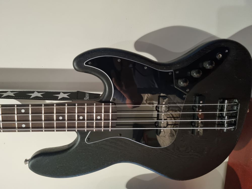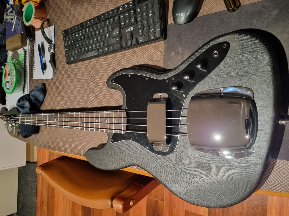 There will be a some bling added a little later, thinking of chrome scratch guard screws chrome bridge cover and chrome neck pup guard, to brighten it up a little. Working on a logo, have a couple of ideas, jet black is the theme and jet black is what it is.