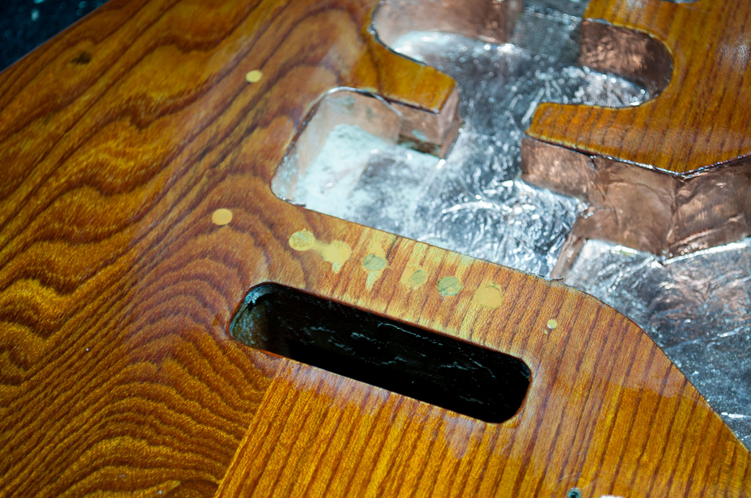 nice fix Soundguy, so was the bridge flush with the bottom of the pickguard ? That colour on the ash is making that grain pop nicely.
