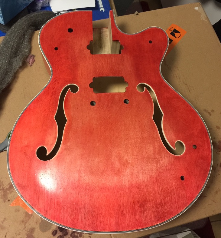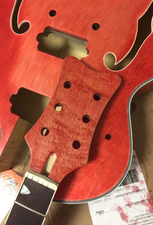 Just decided to see what my guitars future entails... I thinks it's gunna be a mean looking axe! Also stoked with the colour matching with the headstock at this point. I haven't done the intensifying coats so may change in the future, but considering the different timbers used and their different properties, I think I've done well.