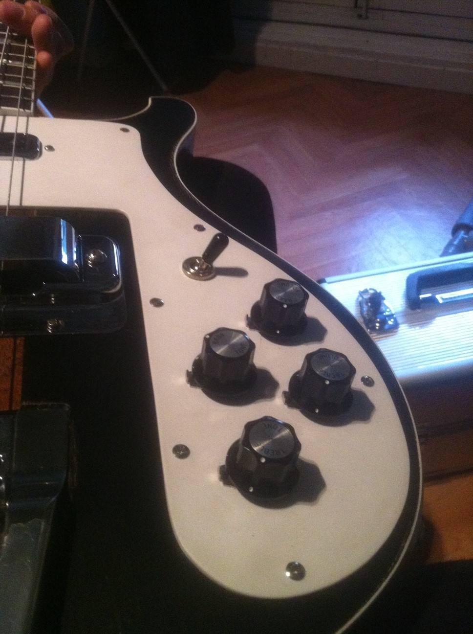 Yesterday i fix some bleeding from pot volumes when they were turn off, and finally i found it was the hot soldering to jack (i thought it was maybe a bad grounding or disfunctional pot but).. Now, its perfect..sounds pretty much a rickenbacker (as its carrying the rick puppies) even connected to the soundcard of my pc, without any effect, only a minimum compression from the pedalboard.