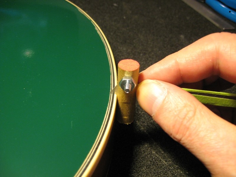 I did a rubbing on the bass and then glued the rubbing to thin piece of wood. I drilled where the rubbing showed me the holes so that I could drill in the right places to get a perfect template for where the controls would go.