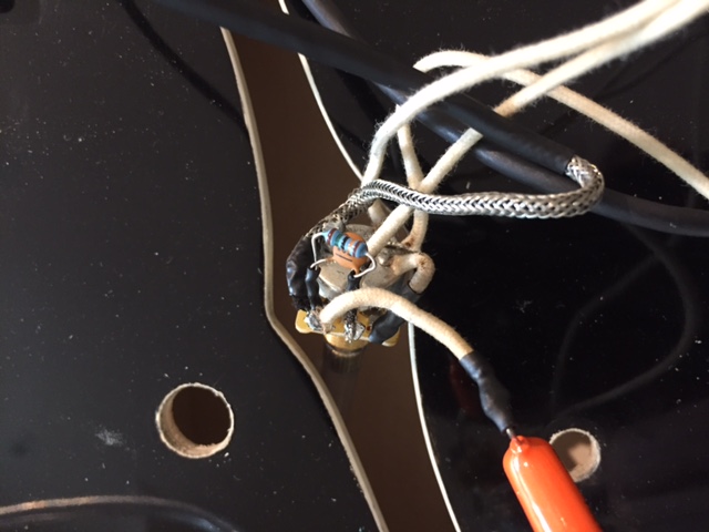 encountered a bit of a problem, when i was pushing the neck volume knob on, I pushed too hard and busted out the bottom of the pot! had to pull the whole loom out to put the pot back together (that'll learn me). When i was pulling off the neck tone knob to take the loom out i pulled the shaft straight out of the pot! DOH DOH DOH DOH!!!