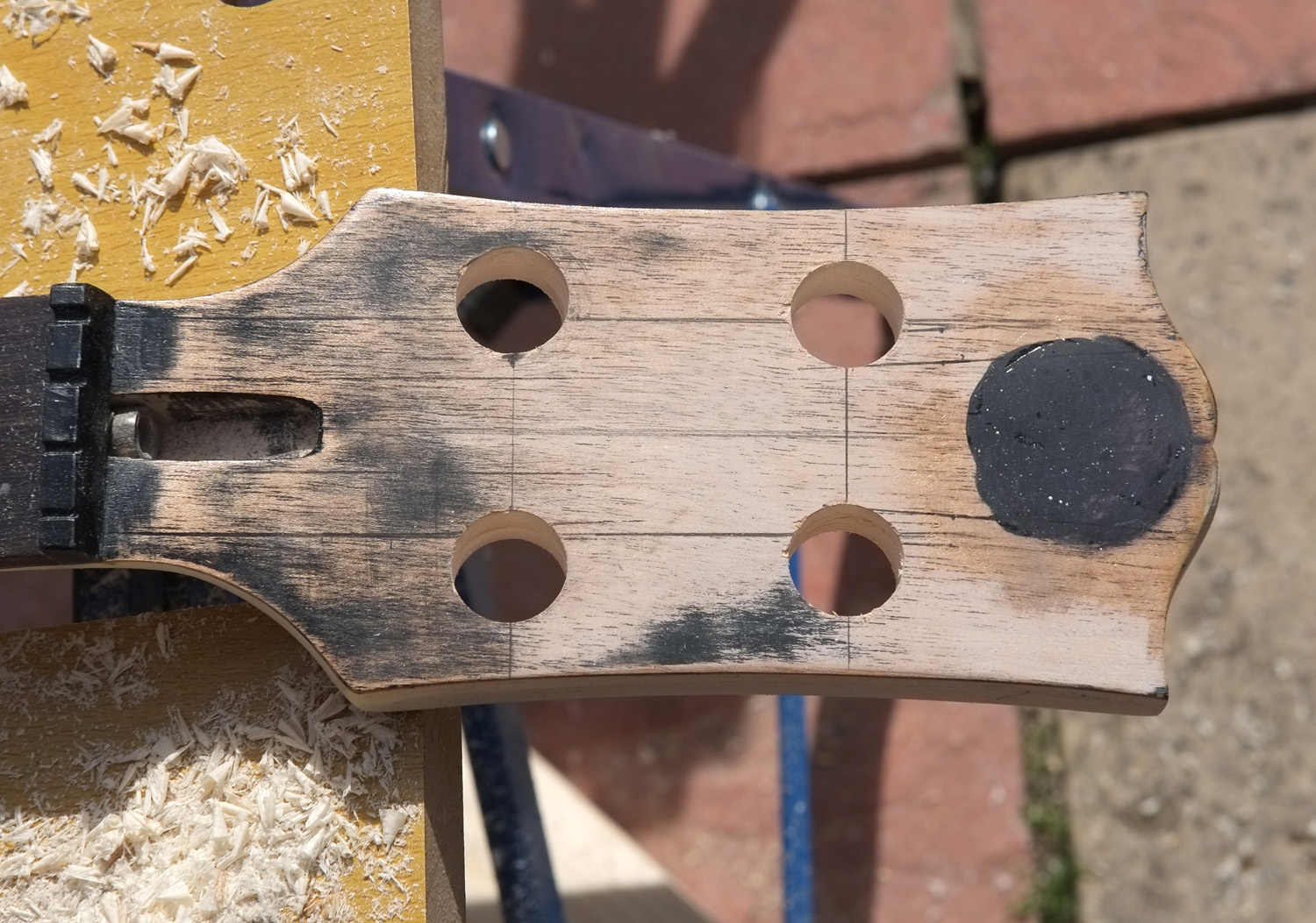 Then time for a test fitting of the machine heads.