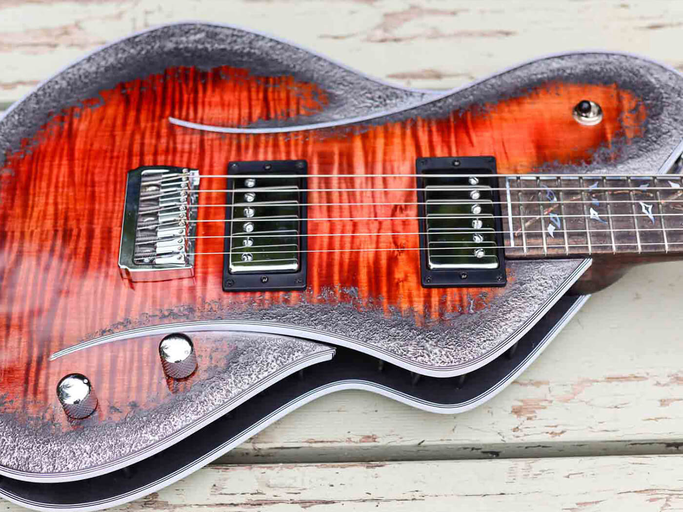 He did a really intricate vine style inlay up the fretboard, but you can barely make out the stem because he chose a colour that closely matches the fretboard wood.
