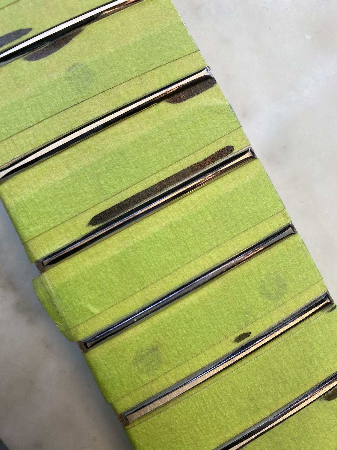 c) I probably should have given the frets a bit of a tap and checked that they were seated properly before levelling - not a show stopper, but #10 and #11 sat really low (or the others really high) so I had to take a fair bit of material off some to get them level.