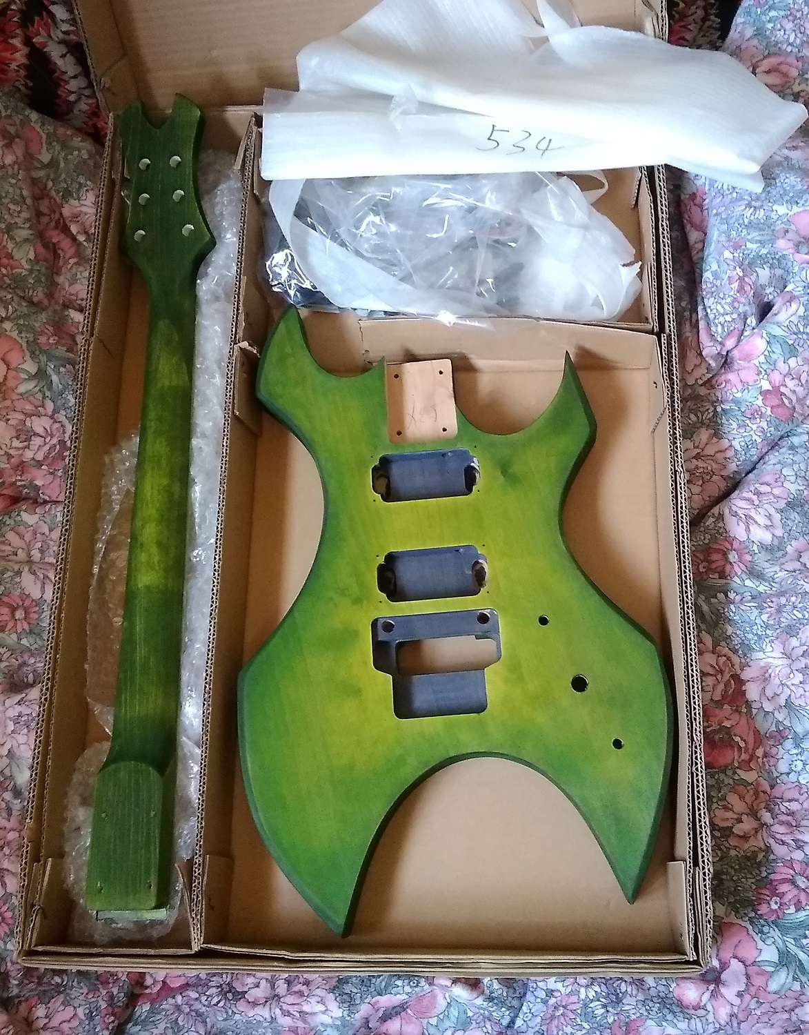 You'd dye, then spray. Mask the top and bottom of the body and spray the edges first, then when dry, uncover the body do the sunburst on the edge of the body. Practice on some cardboard shapes first, but it's pretty easy to do if you do it carefully and don't be tempted to spray more than just the very edge.
