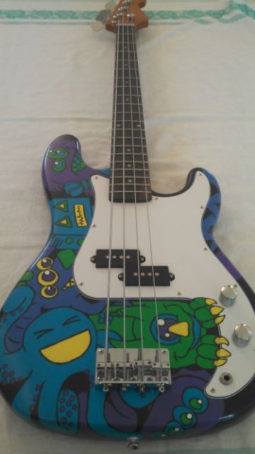Hand painted design with high gloss clear coats, stain and satin finish on the neck.