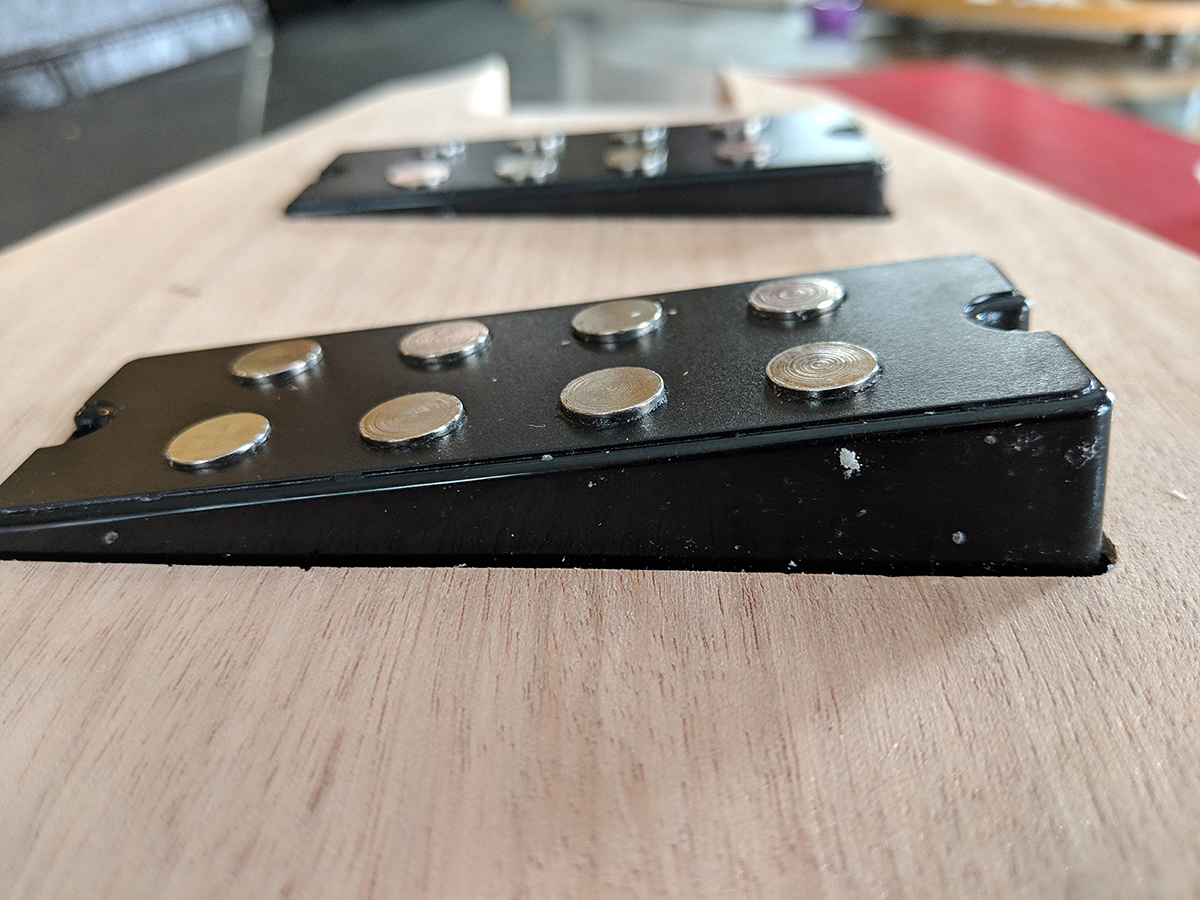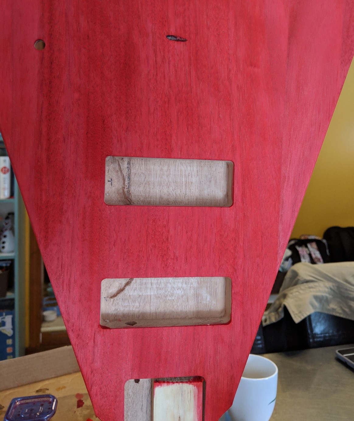 Next up: working through the body issues. I discovered the stock pickups are somewhat unique and I can't seem to find any after market pups that fit in the cavities without adding a pickguard. If anyone has any suggestions, I would greatly appreciate them. Or let me know if I'm nuts because the stock pups are actually good.