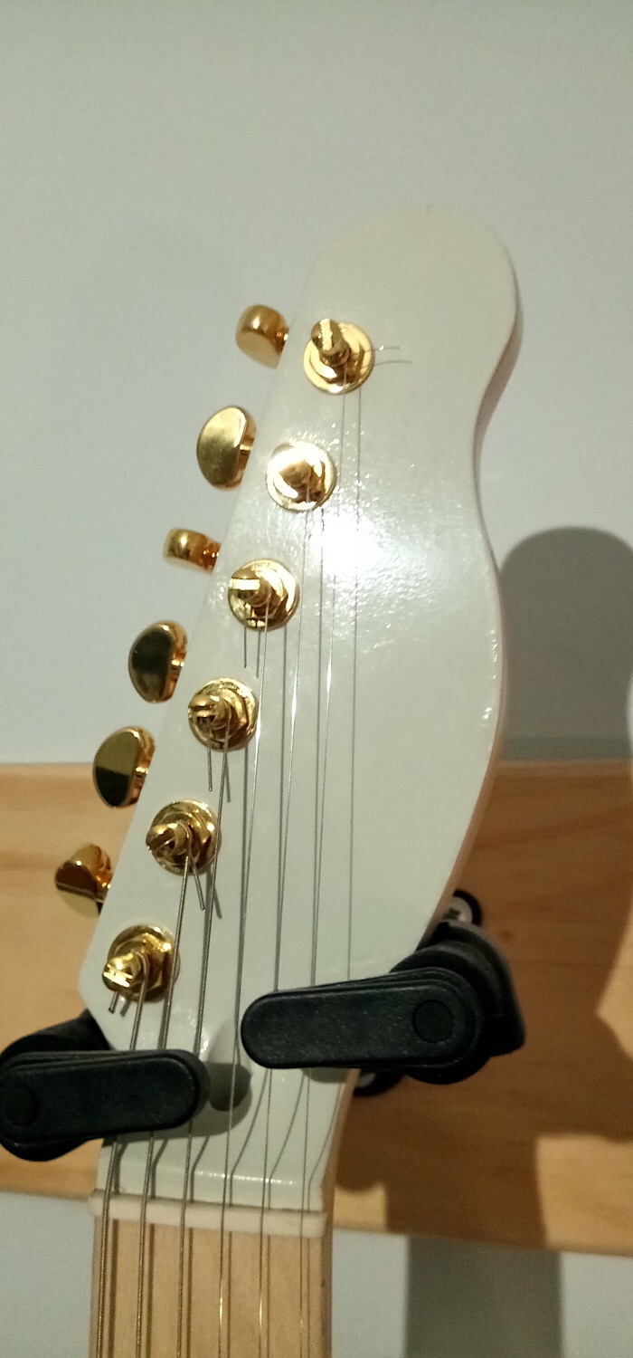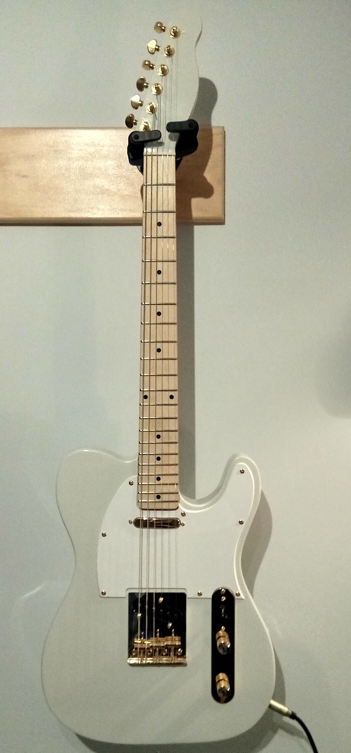Here is my recently finished TL-1 kit, the very first kit I’ve ever made and entered into GOTM. I got it for my birthday and I have spend many weekends working on this. I went with a Tele as I heard it was a good place to start and I sure am glad I did. I love the white and gold colour scheme and it feels different to play than my Strat but a good different. Along the way I didn’t have too many problems and whatever problems did occur disappeared quickly.