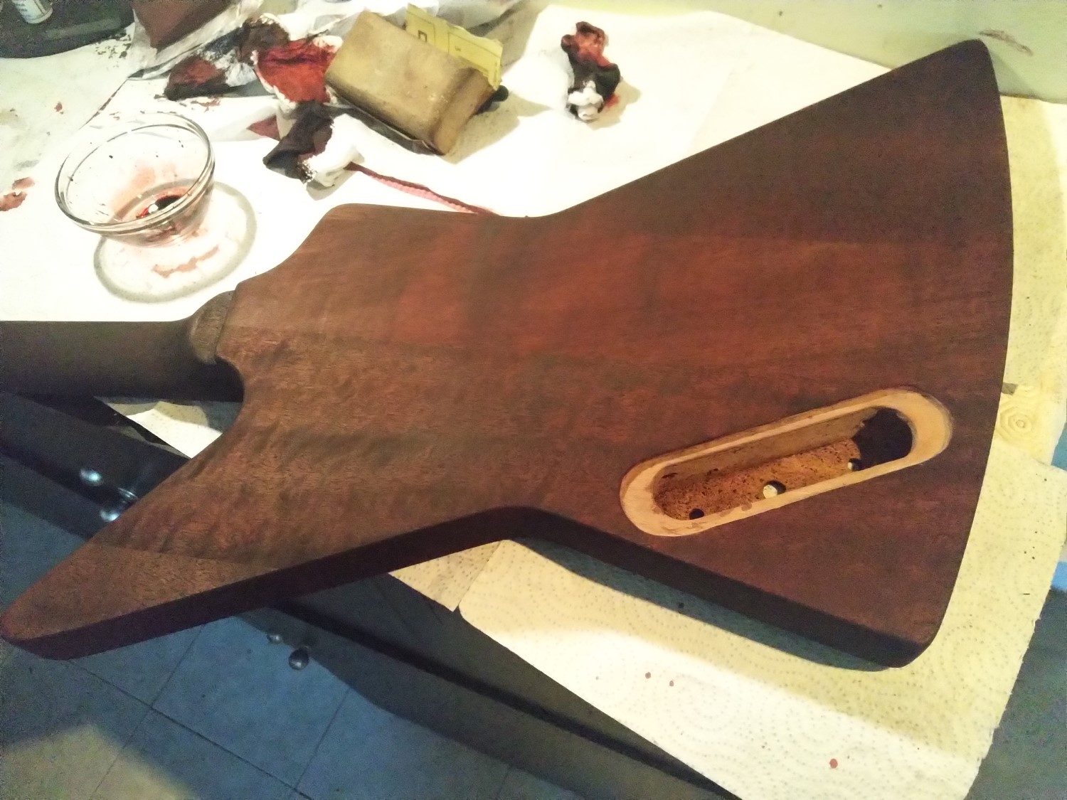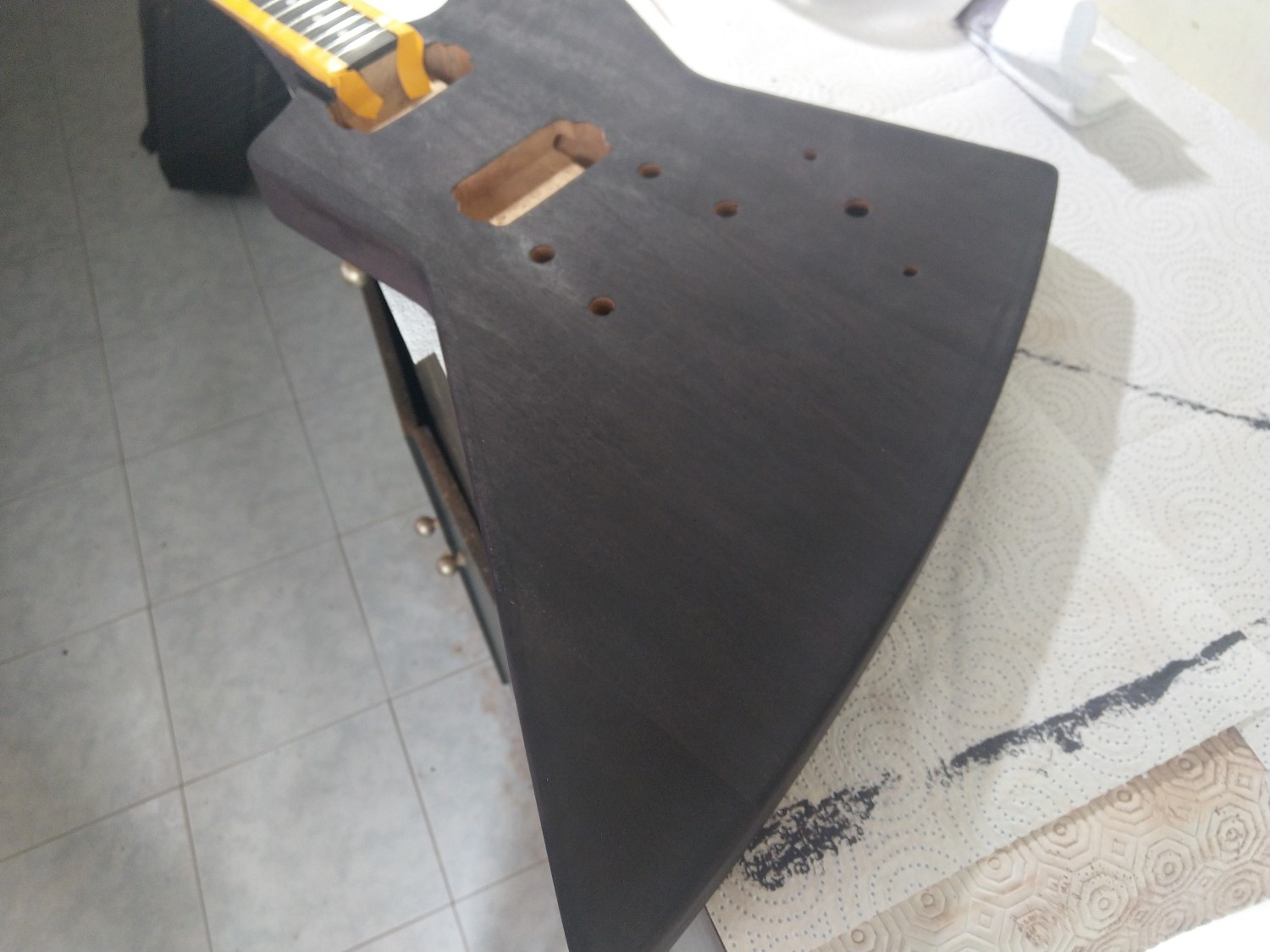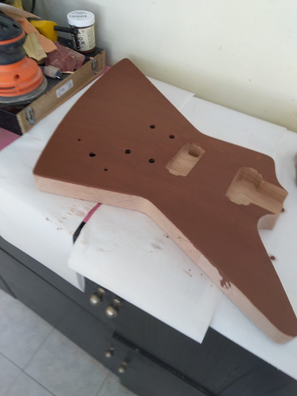 As for the neck, being maple it should feel pretty smooth straight out of the box and again maybe a bit of 80 if you feel the need to dig in for any reshaping otherwise 120 should be all you need to use and possibly a feather light run over with 180.