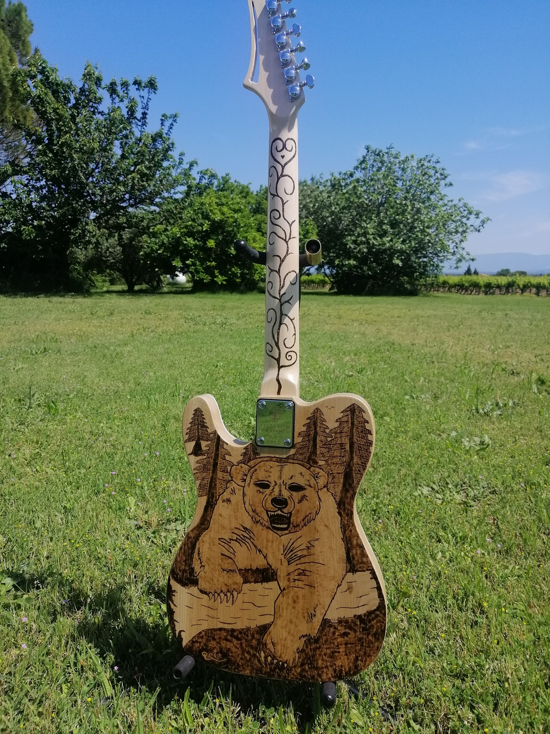 · shot of the back of the guitar; and