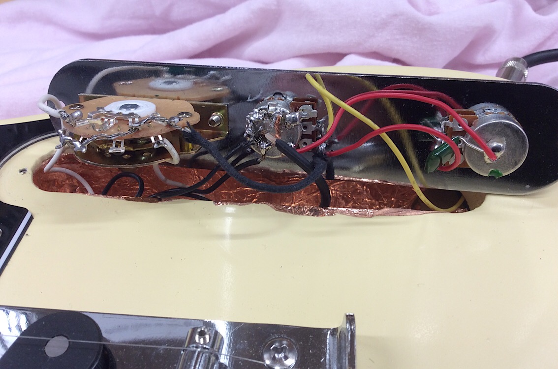 It's always best to run some copper screening tape underneath or close to a screw hole. Then you have positive pressure holding the control plate down on the copper tape to create a good conductive ground path. I always run a tab of tape up under each end of the control plate on a Tele/