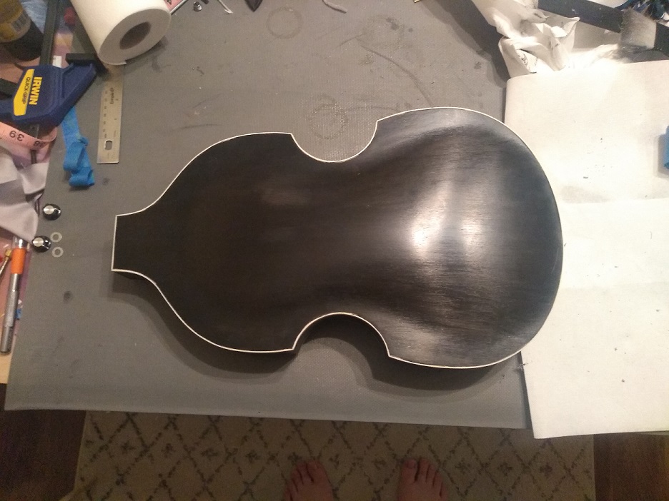 The first instrument I learned was the viola, so I've always been drawn to the violin style basses. I went with the spalted maple top for a more unique look. The plan is to go with a clear coat for the front, and black for the sides, back, and neck, but possibly use the same clear coat on the front of the headstock as the body.