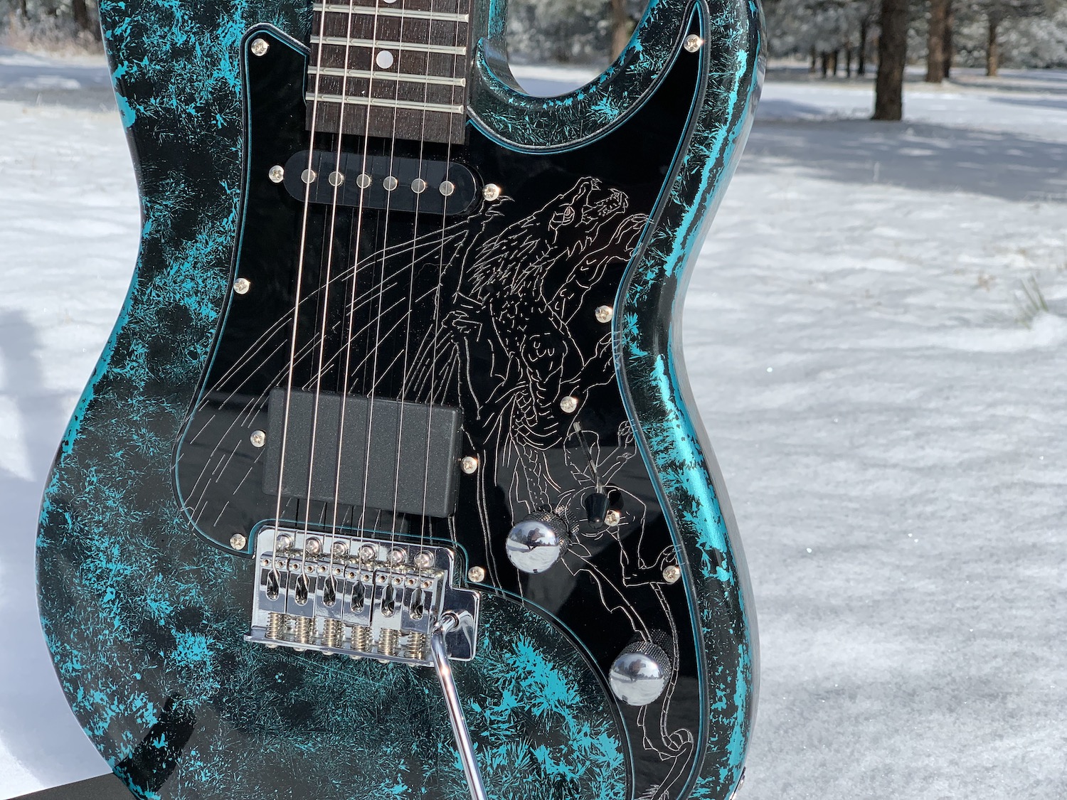 OK a little late to the party, but here's the first progress shots of an ST-1JR 3/4 I'm putting together for my son. This is my second build, the first being a 335 kit from somewhere else. The requested theme was "Ice Wing", which is apparently some sort of dragon made out of ice from a book he's reading. The head I carved out on a bandsaw to resemble a dragon tail, and then tried to put a paint job on it resembling ice crystals. The last piece will be to put an engraving of a dragon into the pick guard.
