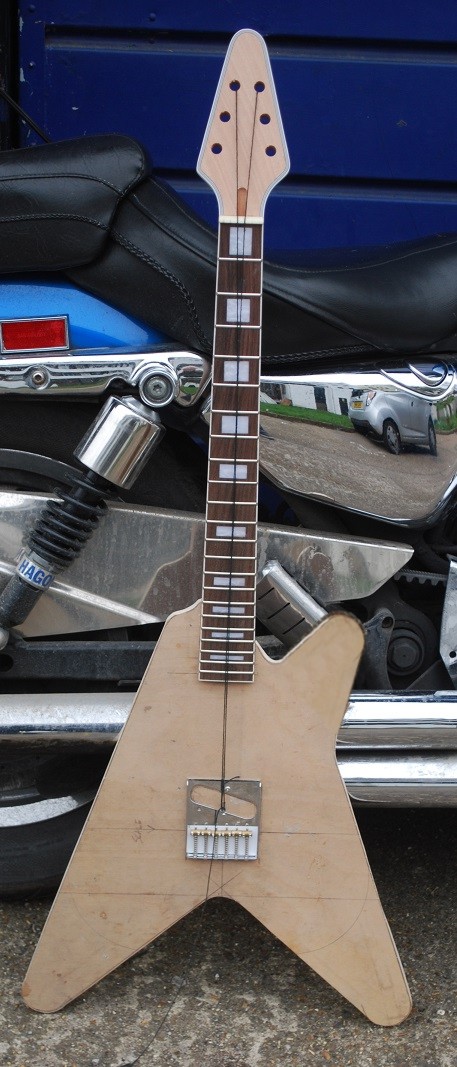 Looking through the ugly guitar thread one of the standout, fairly basic uggers is the yellow Flycaster, a quite poorly executed design mish mash. (apparently these are now commanding premium price's due to the short production run and consequent rarity) Now I love Telecasters, I also love Flying V's. The V, in my opinion is one of the most comfortable guitars to play, when standing and with a strap (obviously!) Its not a guitar to just pick up and jam with, or write or just exercise your scales or whatever ( I fitted a Steinberger flip over leg rest on my V because of that)