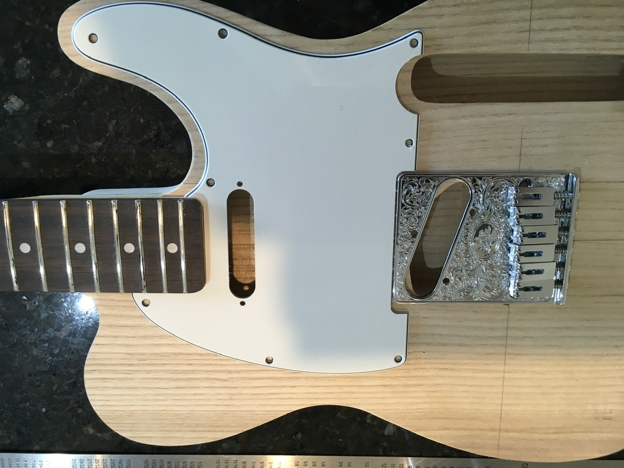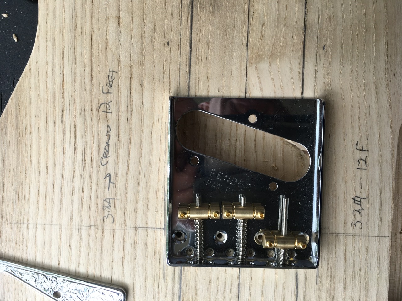 Having now received bridge, pick guard and checked the frets and neck, I thought it was time to measure up for bridge placement.