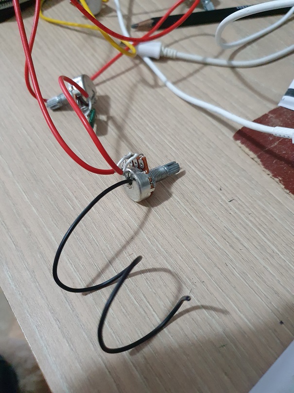 Not ready to do the wiring yet and between coats of Tru Oil. I'm ok with the wiring but looking at the wiring diagram for my Guitar , a hollow body AES-1 and comparing it with the wiring kit supplied with my guitar kit, well i'm lost to be truthful. tried to download a couple of photos but so far unsuccessful. My kit has two humbuckers , 4 pots and a 3 way switch. whats really confusing is three wires,( red,white black), have their bare wire soldered together already