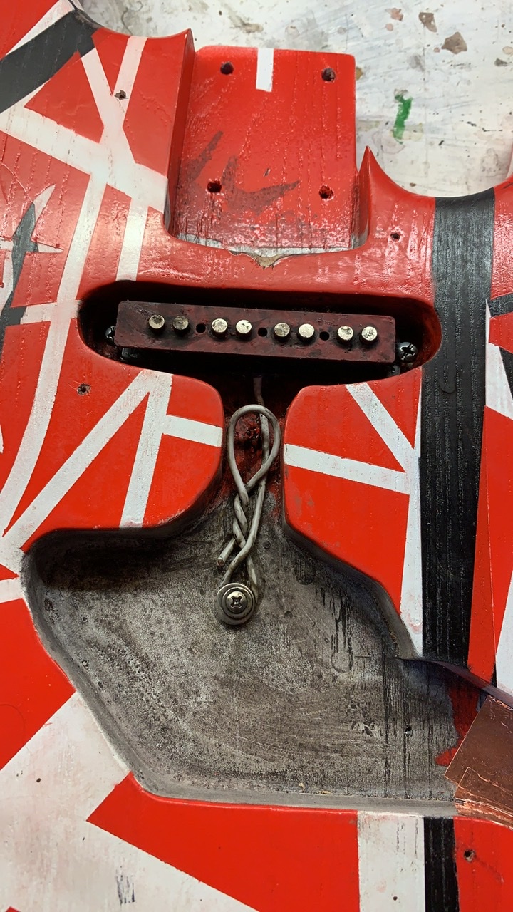 A few years ago I built a frankenstein strat, as close as I could get it to be without throwing big cash at it, as I'm not really a great guitarist! It came out really nicely, and is fun to play, I have even dragged it out for the odd gig, but am a bit shy to strut around on stage with it much, as mangled versions of 'ain't talkin' 'panama' and 'hot for teacher' is about as good as I'll ever get, but as a guitar it's great. I made some mods for the electrics and the front pickup works and the humbucker can be coil tapped too.