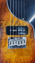 The new bridge is a Wilkinson string through matched with a polished bar string holder. Pickup is also Wilkinson through a 500k concentric pot. Orange drop cap give a really warm fat sound. Last touch was a 3 ply pick guard.