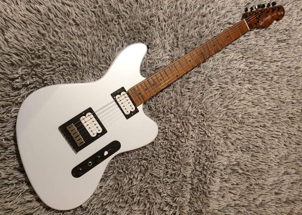 I dig this one! Love the minimalistic style, nice upgrades and cool headstock shape.
