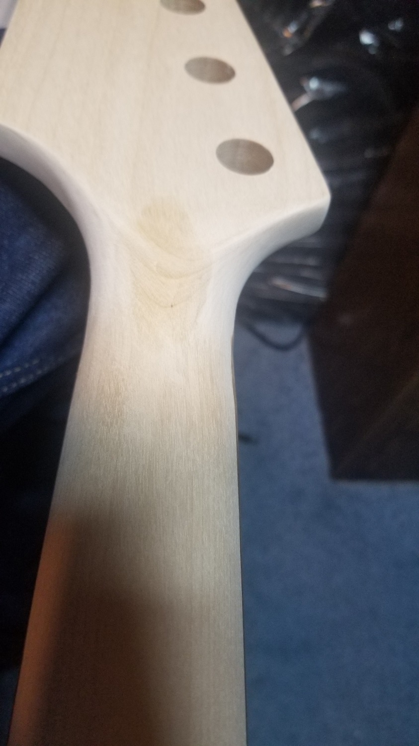 On the other hand, I have a PB neck with an eye in it (not a birds eye). This would generally be considered a flaw, albeit one that does not affect the stability of the wood. I finished it clear anyway. I was pleasantly surprised by the chatoyancy it developed. It actually looks really cool.