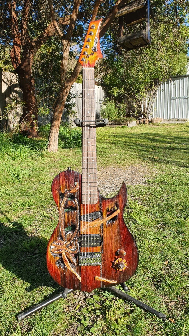 Armed with only an orbital sander and YouTube the first kit was a Jackson style V.