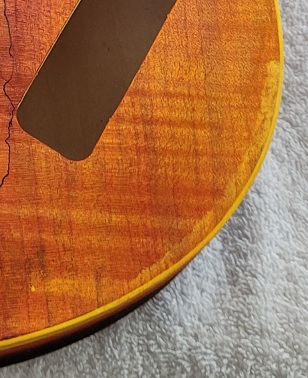 Another method for disguising the glue spot around the lower bout, is tinting some Tru Oil with the Angelus.