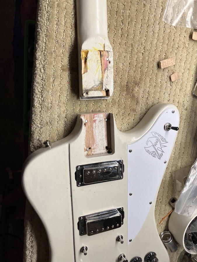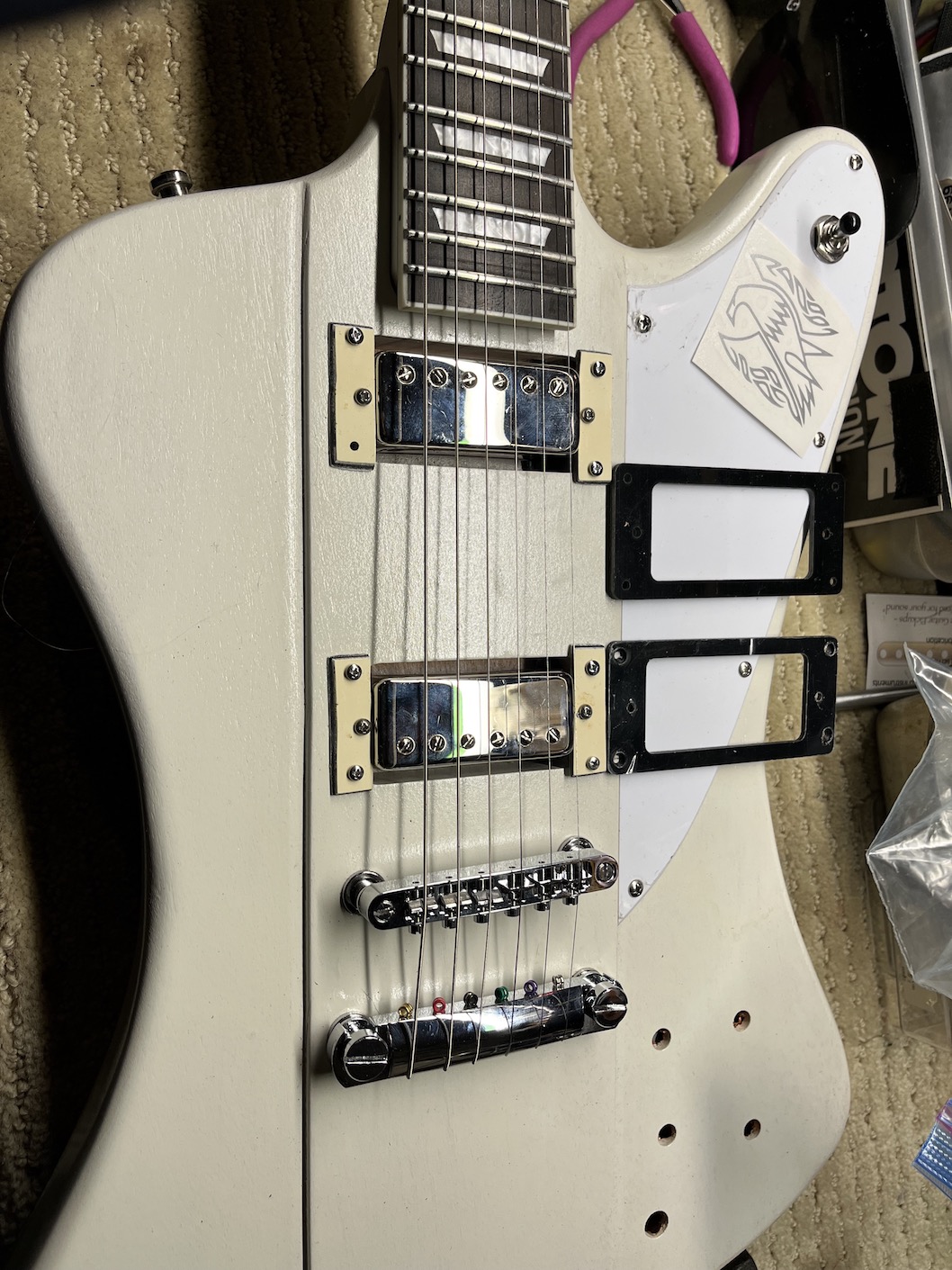 I was inspired by Pete Stroud's Firebird 1 with a black dogear p90, and things have taken a turn. The kit is a bolt on, but I just couldn't pull the trigger on a Gibson. I thought of modding an Epiphone, but after all that I could assemble and finish my own, so here I am. Originally I was going to keep to a single pickup and dowell the holes, do a steath stacked P90, but my custom pickup guy is sending me a pair of mini-humbuckers for a good price...