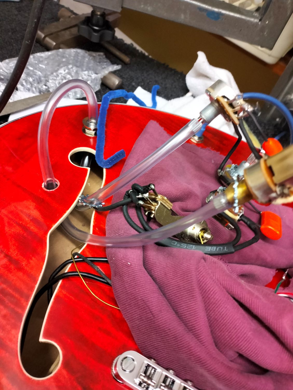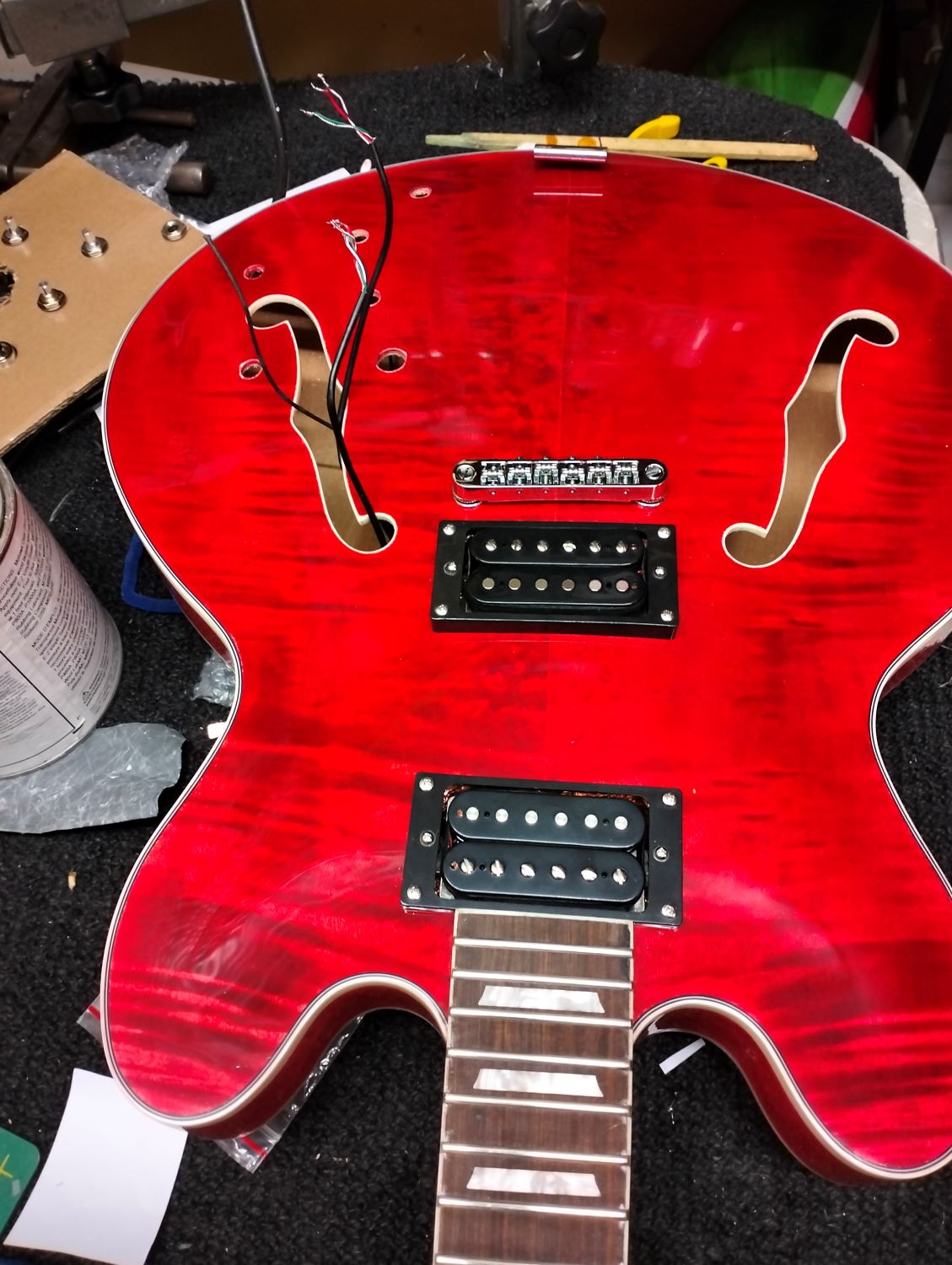 I temporarily attached the pickups to test the wiring - I got the switch back to front the first time - always worth a check!