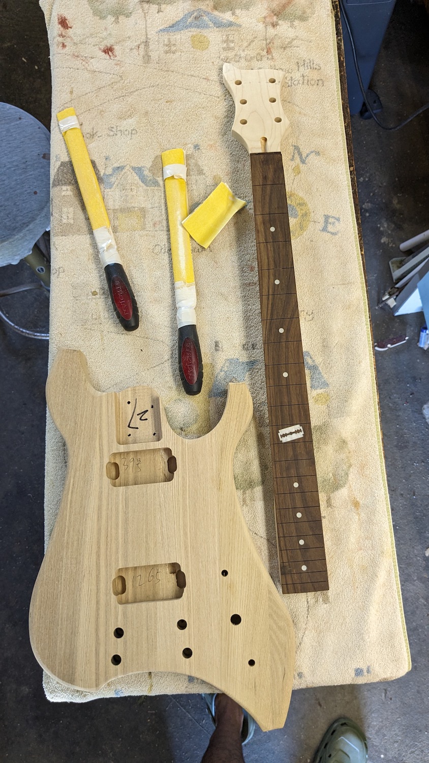 Tomorrow if I get the chance I'll test the neck angle with the bridge, draw the body and neck shape and maybe to the cuts. (I'm also working on a lap steel 25" atm)