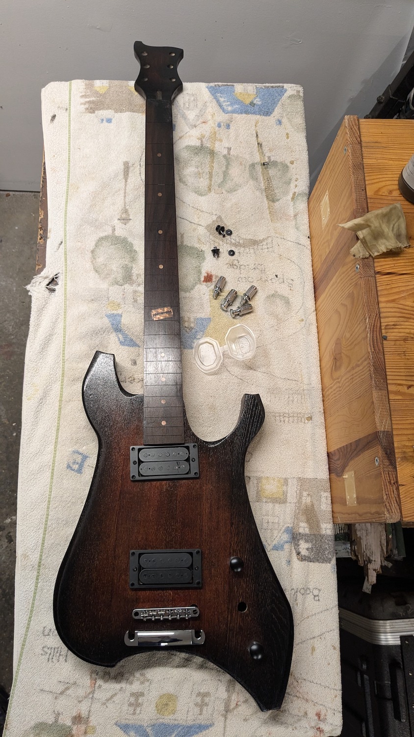 You have something really unique there. What is the scale on it? Curious how you plan to string it. Are you giving it a low B? Or are you planning to have the upper strings to get some Baritone out of it?