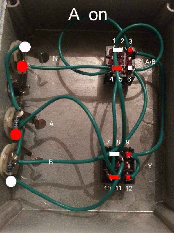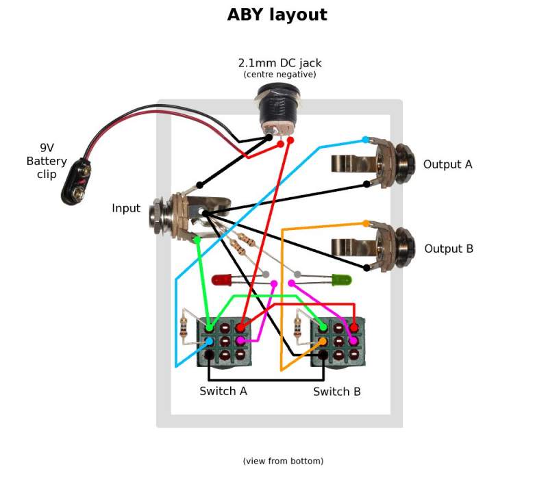 A friend of mine provided me with this schematic for an a/b footswitch but I'm having trouble interpreting it/thinking about how to apply this in context.