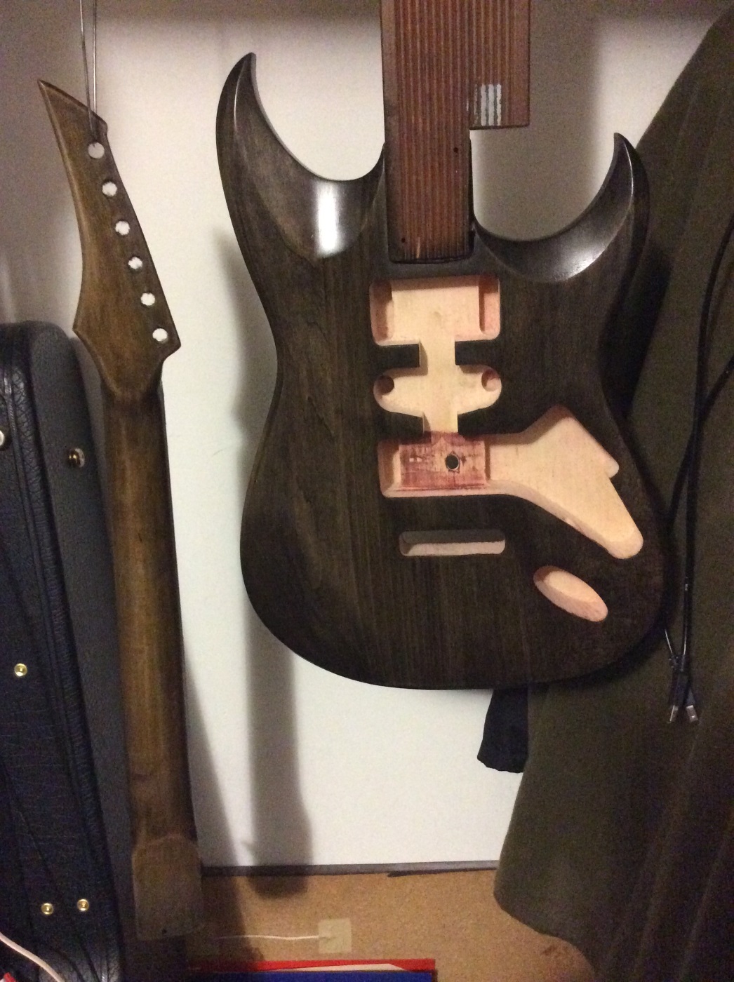 Cool reshaping and I like where this build is headed. Love the idea of doing a pointy super strat that *isn't* a solid colour.