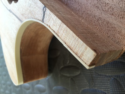 Question 3: there's a bit of a gap in the body at the neck end of the cutaway, the binding sticks out a bit. It will be covered by the fret board and the neck heel but may still visible looking from the back. Any ideas on how to fix/cover it, should i even bother?