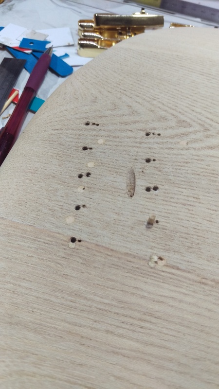 There are a few dents in the wood that I've got to fix:
