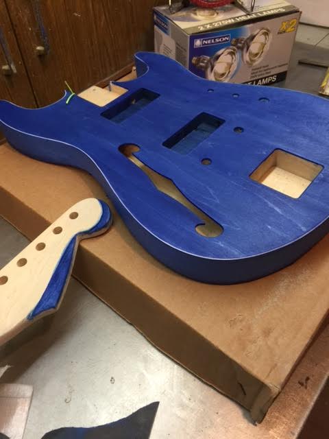 Hi, this is the front, the darker blue will be lightened after the next sanding. I went too dark. Matching headstock.Attachment 10006