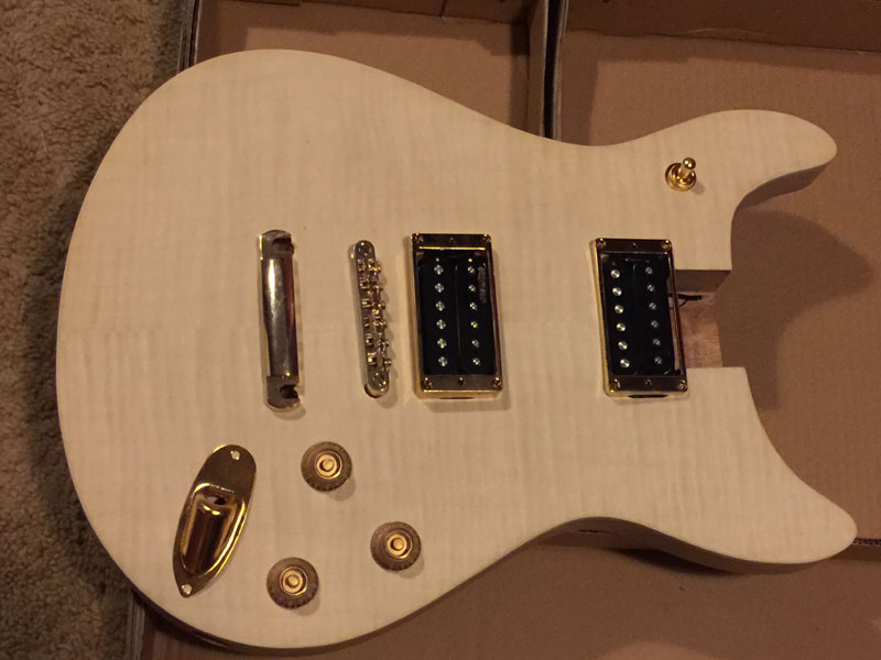 I paid an extra $110 to upgrade to 4 wire wilkinsons and gold hardware. I got a nice surprise when I saw the gold faces for the humbucker mounts in the kit. I wasn't expecting that.