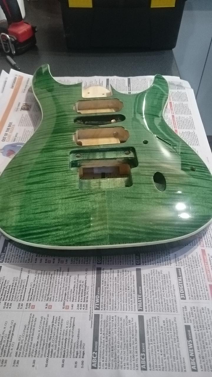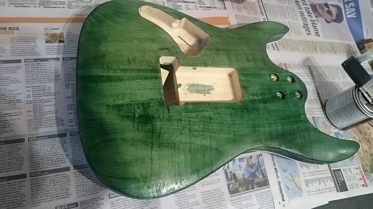 So far so good, I think another coat of green to bring it up a little more and I will get to staining the back and sides. Going with green for them too, might add a little black to get them a little darker than the top though. Anyway that's it for now, I'll catch you all later.