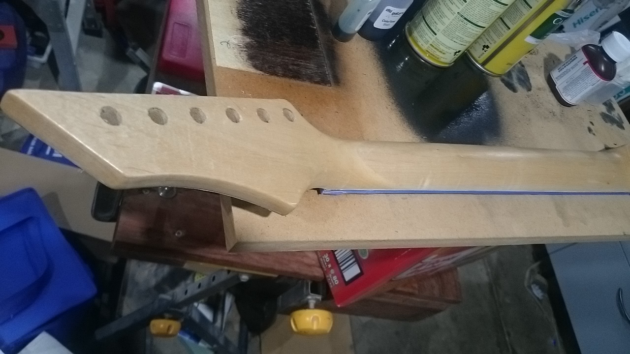 Scraped the top of the binding and hit it with a coat of sanding sealer.