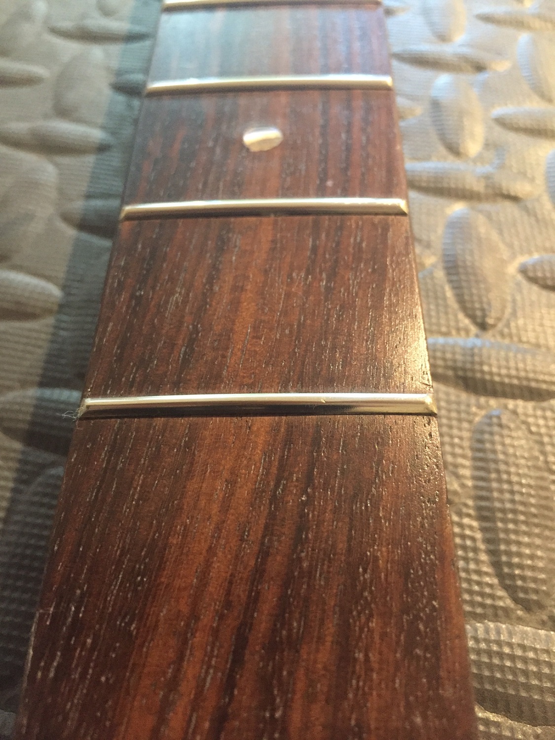 2: Position neck, clamp, drill and install (with tuners for high/low E to make alignment of bridge easy)