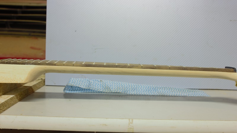 Hi Strontium, I was still applying top coats to my EX-1 after gluing in the set neck and because of all the weird angles it proved to be a right proper pain to hang and flip whilst trying to get even coats on the thing. It was hard enough when in two pieces but even harder once put together. Mainly did this as I wanted the finish to blend better around the heel joint and also on the sides of the neck pocket too.