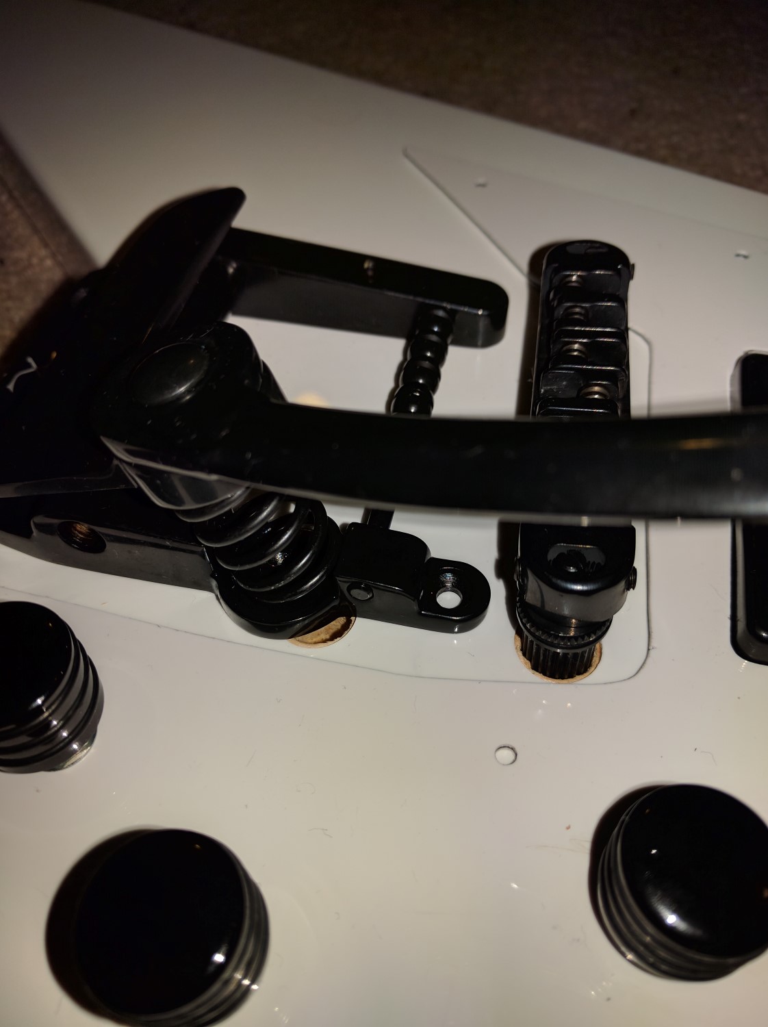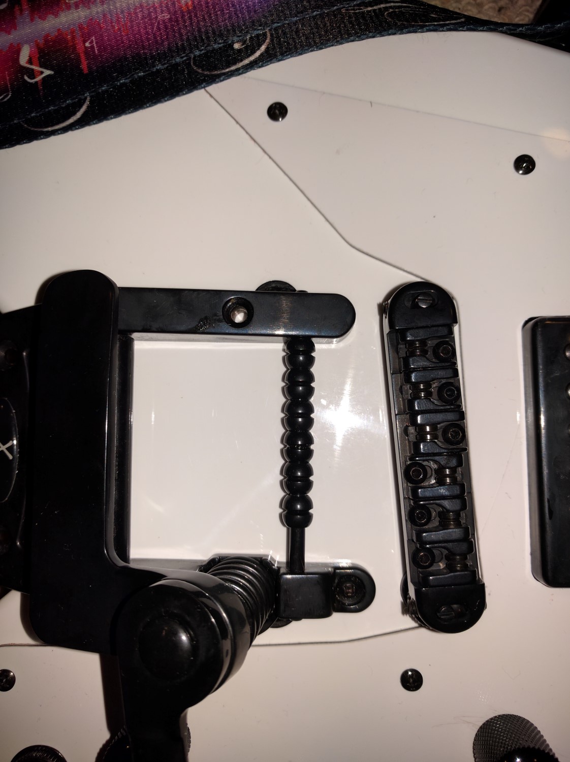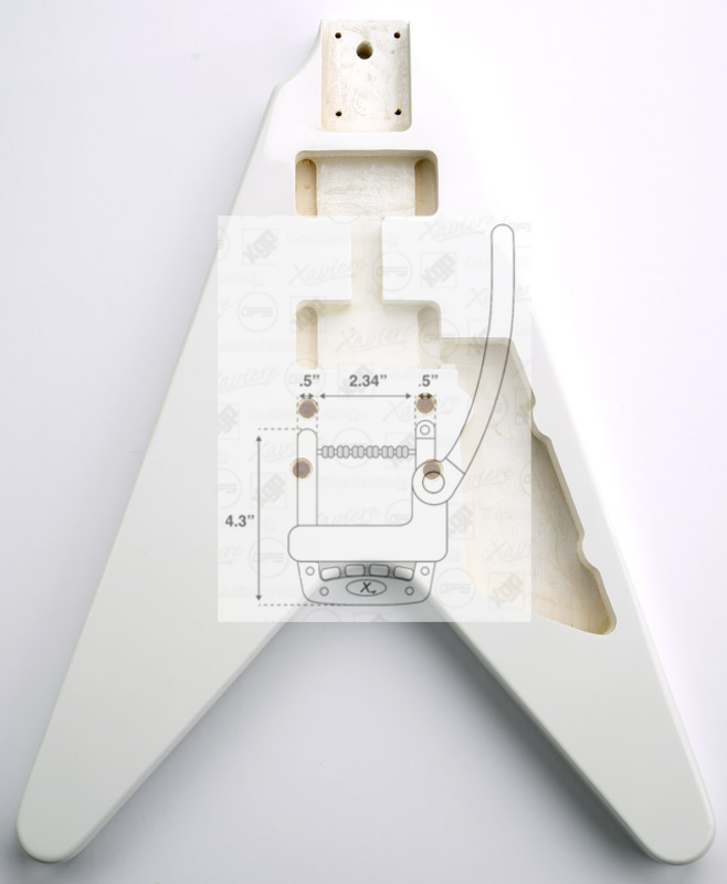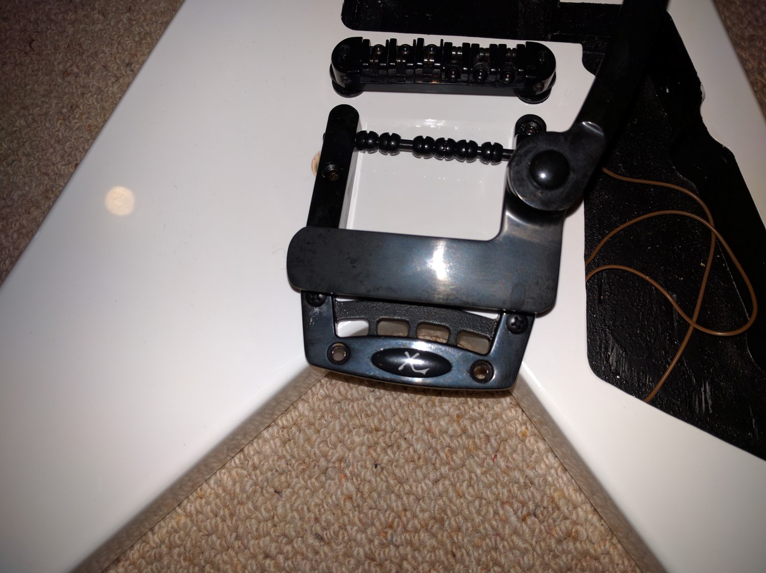 The other tricky thing is the X-Trem. I did a little mockup (which I don't have on this computer) and the screws, as the holes on the trem are located regularly, don't actually fall on the body. What I am planning to do, is drill a couple of holes further up. I am 90% sure that I will be able to do it, BUT in the case that I cannot, I will forgo that for the time being, and just use a stop-tail, then down the track get a Bigsby and Stop-Tail Vibramate.