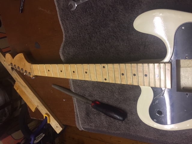 I love the tele body shape but not how it sits against my side - so had to do a bit of a cut away on the back.
