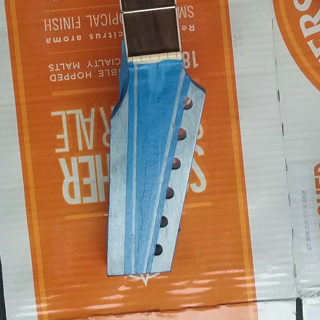 Drawing of the planed head stock, ive got the machine heads at 25.4mm centres and 127mm ovee all. I lined up the sides of the neck so that the strings are straight through the nut. Wanted to make sure im on the right page before i go cutting and drilling holes.