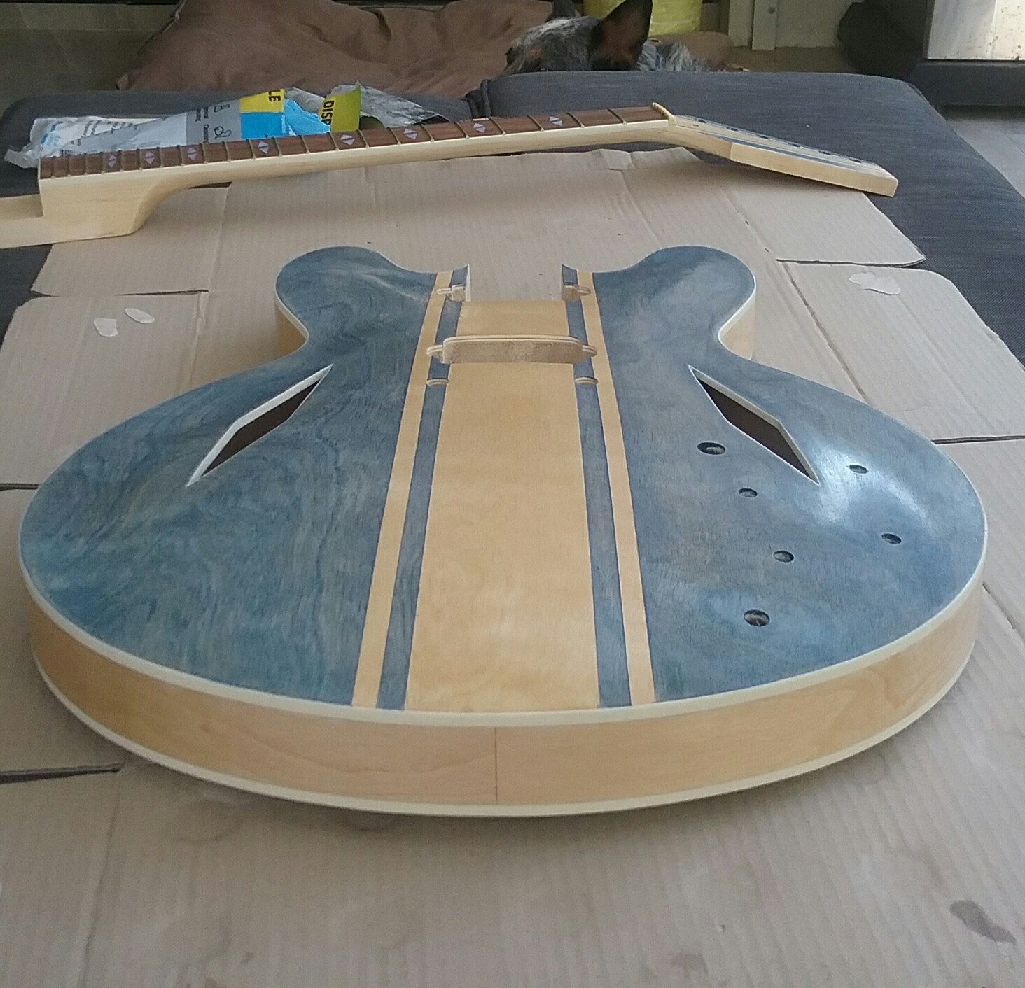 Yeah man! That looks killer. The blue/natural contrast is really, really nice. Great job. I'm looking forward to seeing the clear coats really bring the colour out. Are you planning chrome or gold hardware?