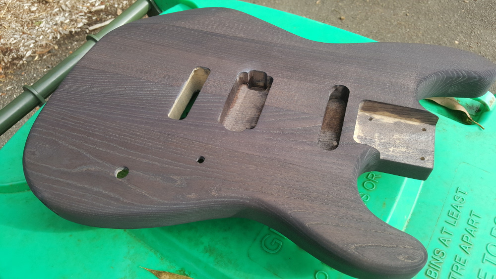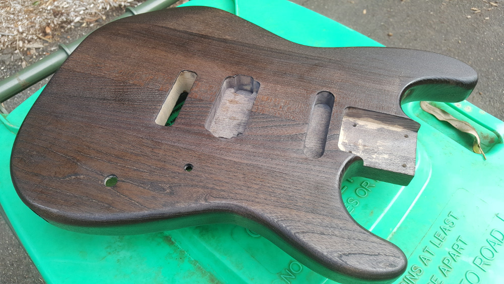 For a finish I'm planning a trans-black dye job to bring out the grain. I was also thinking it might be cool to add some "natural wood" hot-rod flames (you all know how much I love hot-rod flames right? :P). The idea is to mask the flames off with frisket while I'm staining in the hope that they will stay nice and clean and the rest of the body blackens.