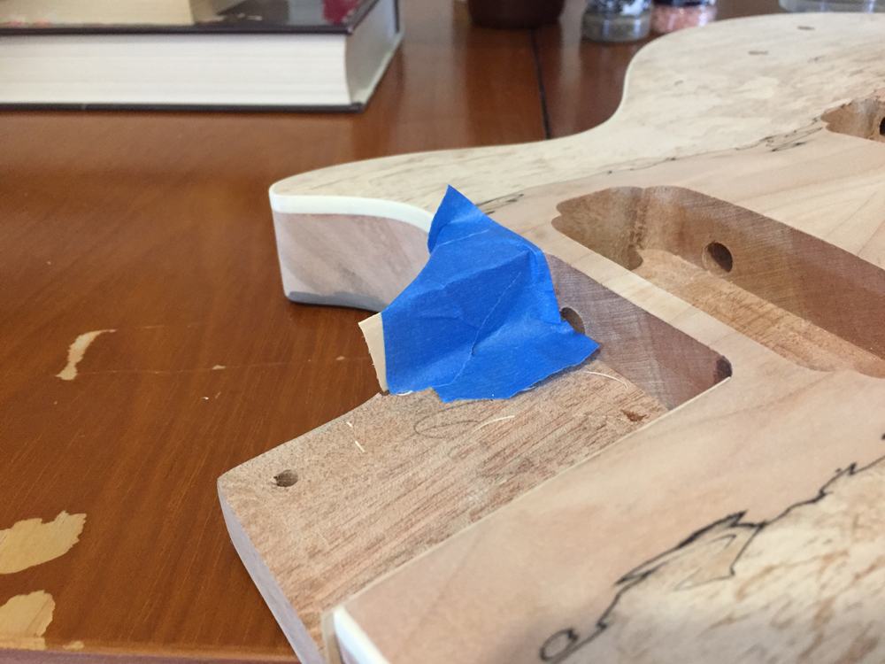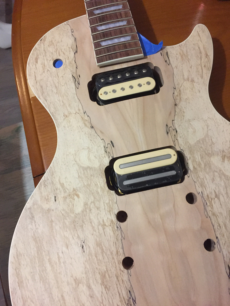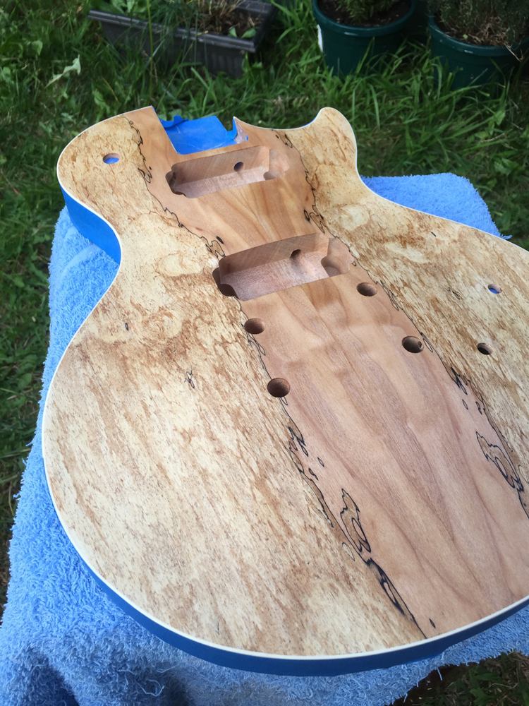 Also spent ages trying to get a red stain I was happy with, and in the end decided to go straight black for the body and neck. The hope is it will make the spalted front really pop. Also I couldn't decide on hardware options that would suit the kind of red I was imagining, but now I'm rolling with the idea of black hardware on the front against the spalted top, and gold hardware on the back against the black. Will post some pics of the stain-in-progress in the next few days.