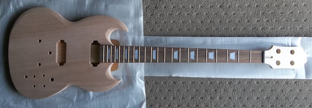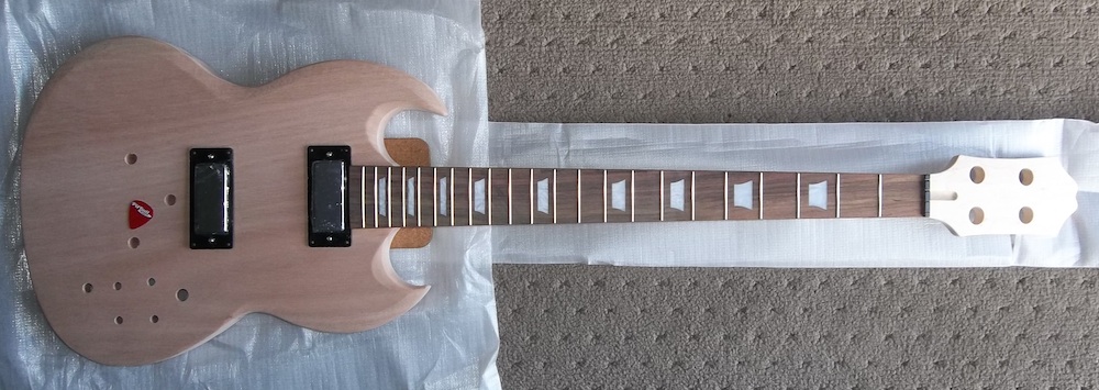 So, a PBG box turned up yesterday. I thought "it's only a bass, I'll look at it tomorrow…". I was expecting what was listed on the web page (after Adam used his usual mind tricks to get me to buy another kit): a SGB-30 basswood body, 30.5" scale, 20 fret short scale bass.