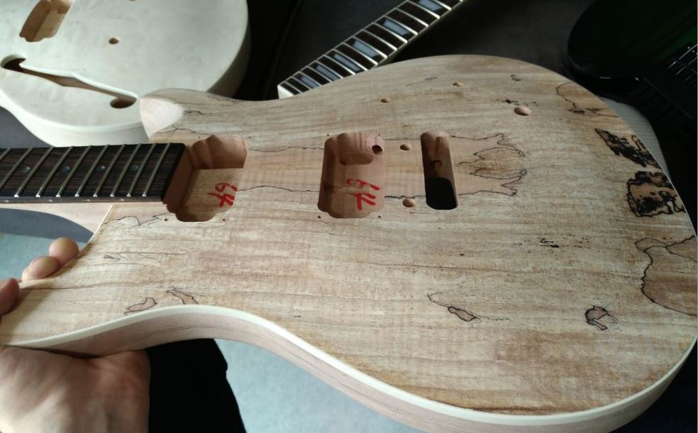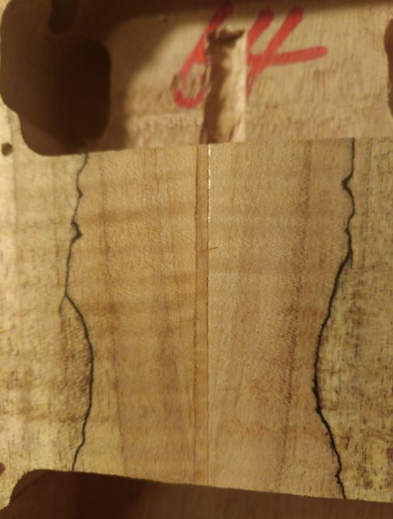 The figure is great and thank god there isn't too many glue stains on the veneer. There is this big problem with the binding next to the neck joint. I'm thinking that maybe I'll use some wood filler. Any ideas?