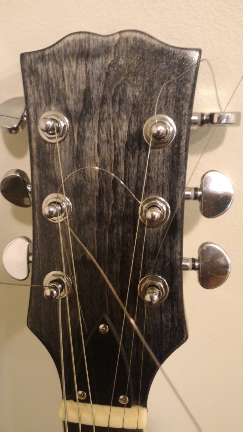 Thanks for your support and advice Cork, much appreciated. Yes, the wiring is not completed as yet and will be secured to avoid any wandering around and rattling. Your pics seem to show a much nicer grain and figure in the body which would have been a shame to stain black like I did, mine was very patchy and the black tended to even it out somewhat. Still, for the price the kit came out ok provided expectations were suitably adjusted as it progressed. With all the thinking time and problem solving required the satisfaction per $ ratio came out reasonably high :rolleyes:.